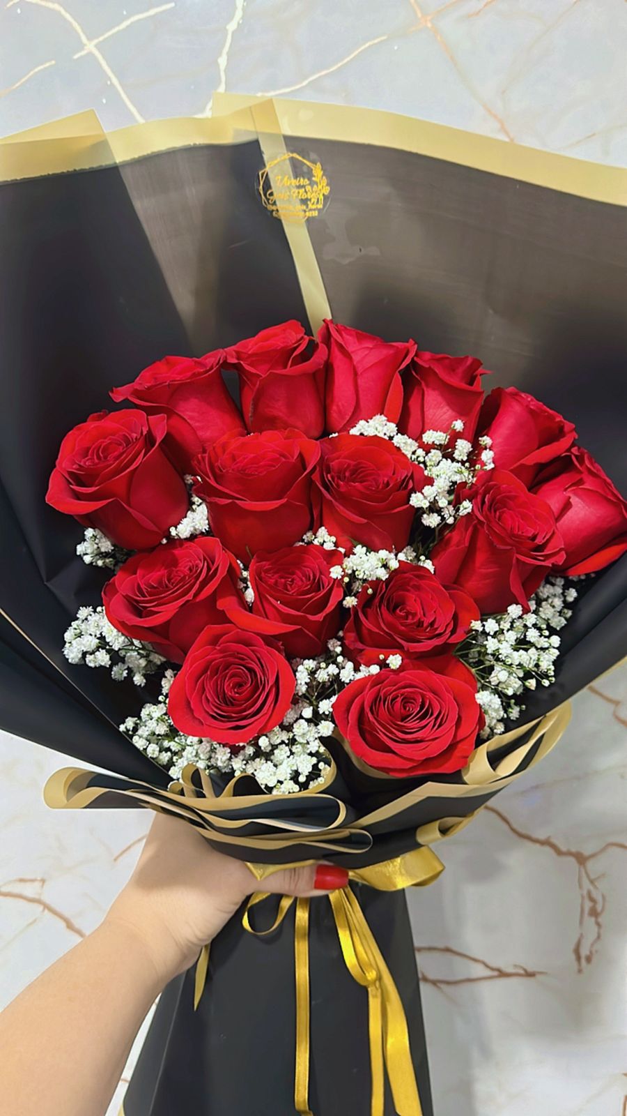 BUQUÊ PREMIUM COM 15 ROSAS VERMELHAS IMPORTADA