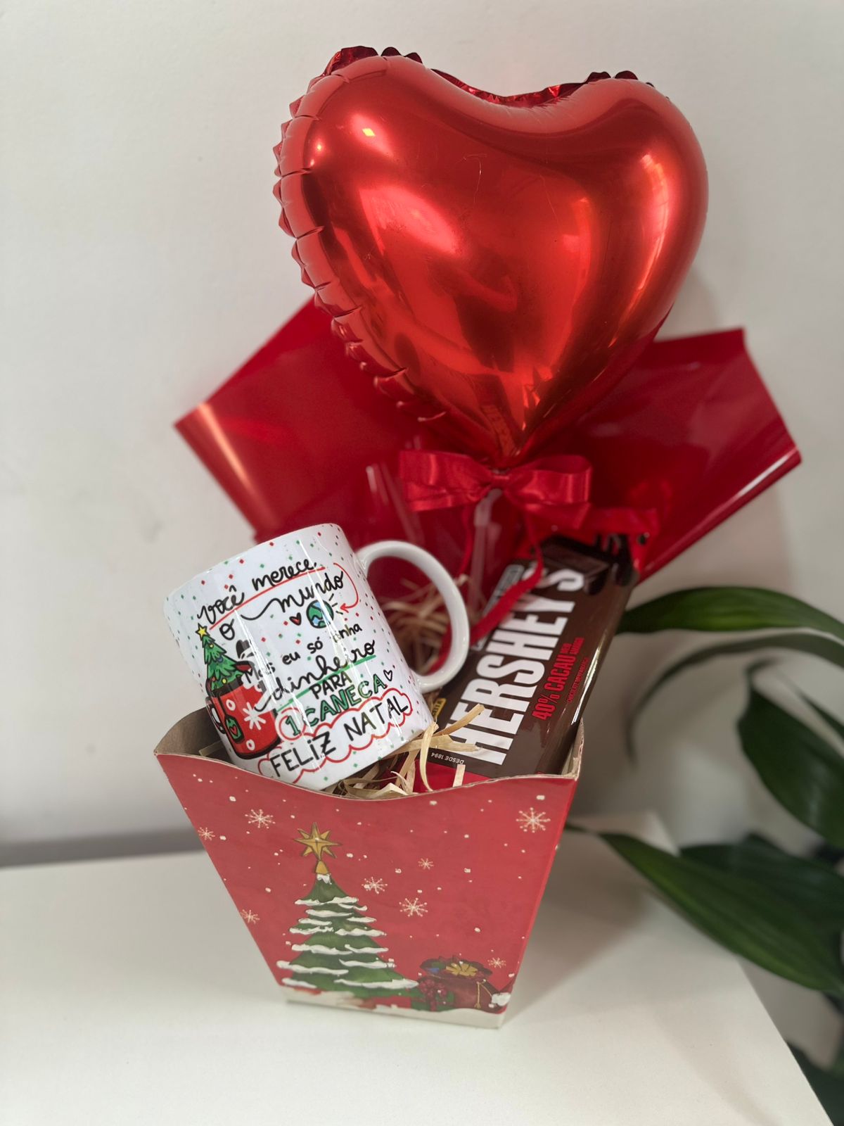 Box Microondulado 1 Xícara 1 Barra de Chocolate Hersheys 1 Balão Metalizado