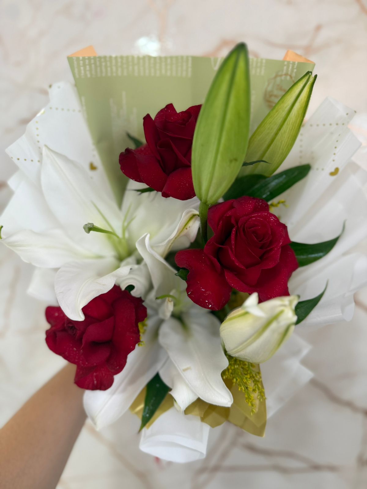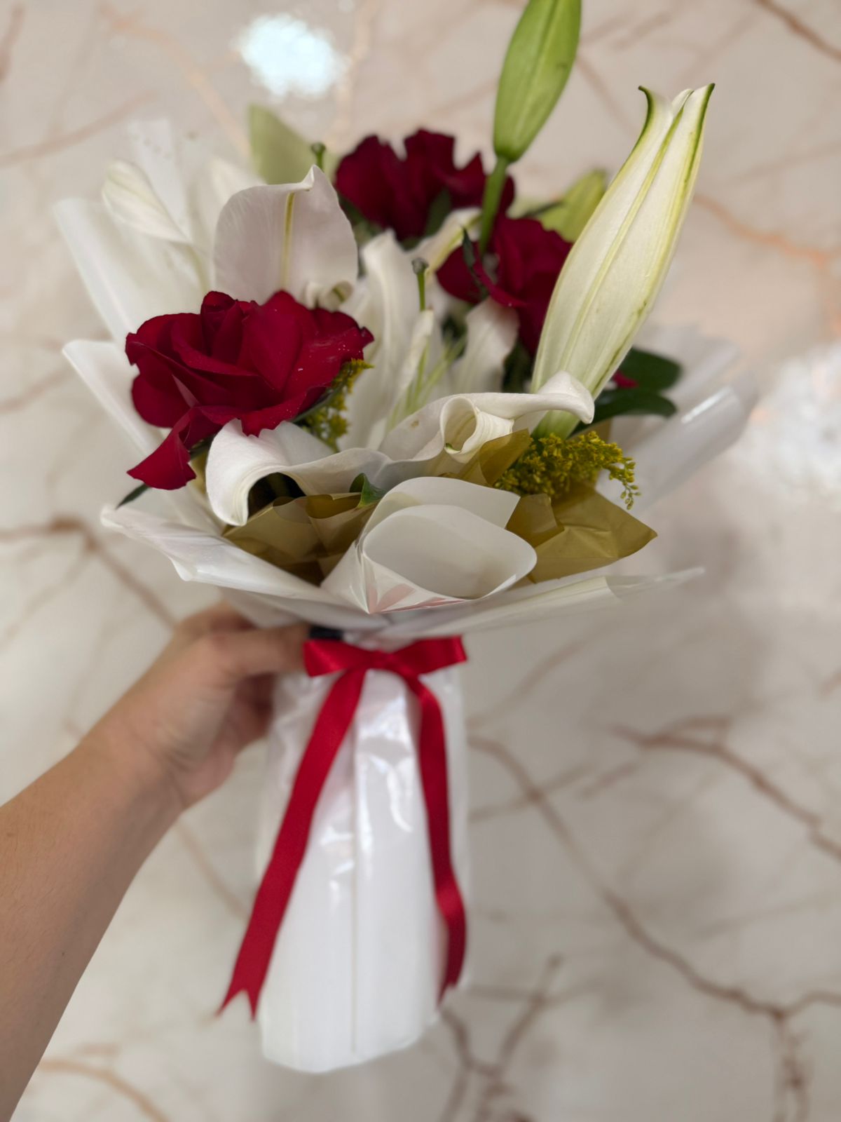 A intensidade das rosas combinada com a pureza do lírio cria um presente inesquecível — ideal para declarar sentimentos, celebrar momentos especiais ou simplesmente fazer alguém sorrir.