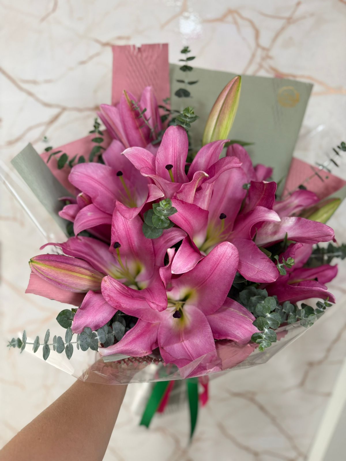Este buquê encantador é composto por lírios rosa asiático, flores que chamam atenção pela sua beleza marcante e pela elegância natural. O lírio rosa simboliza amor, admiração e prosperidade, sendo perfeito para presentear alguém especial ou demonstrar carinho em qualquer ocasião. 💗
