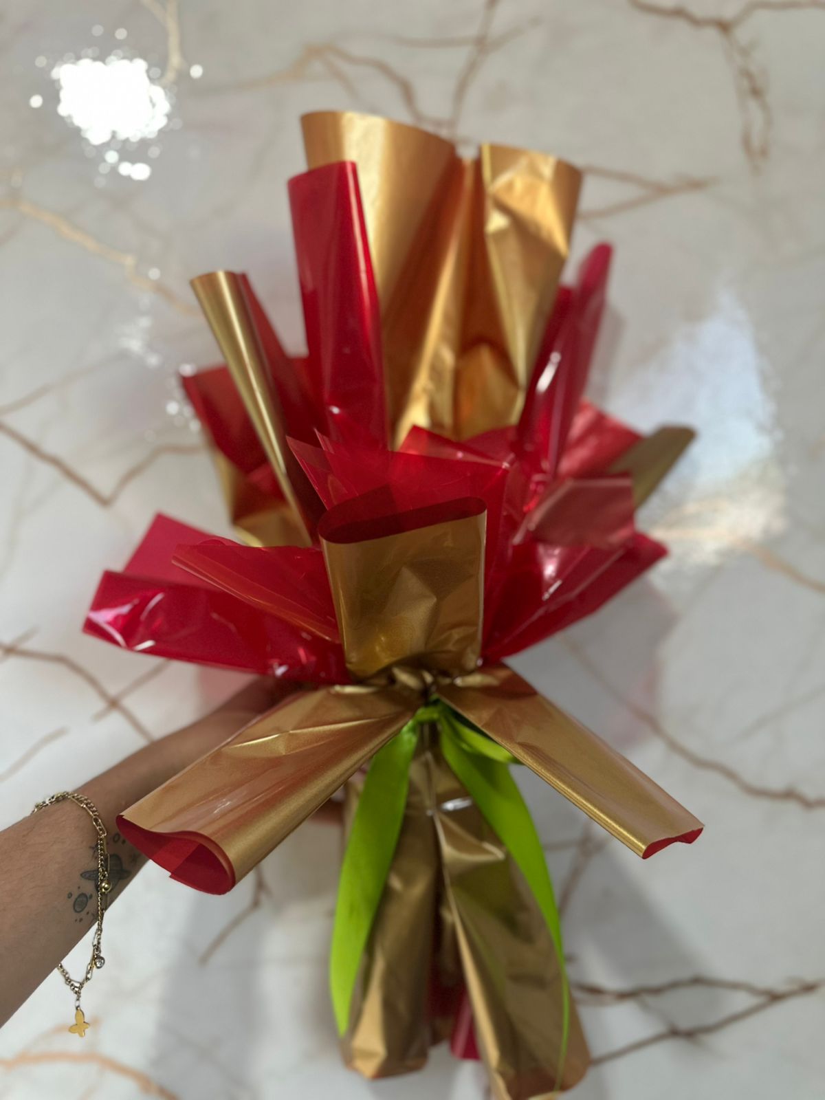 EMBALAGENS FLORAL VERMELHO/DOURADO