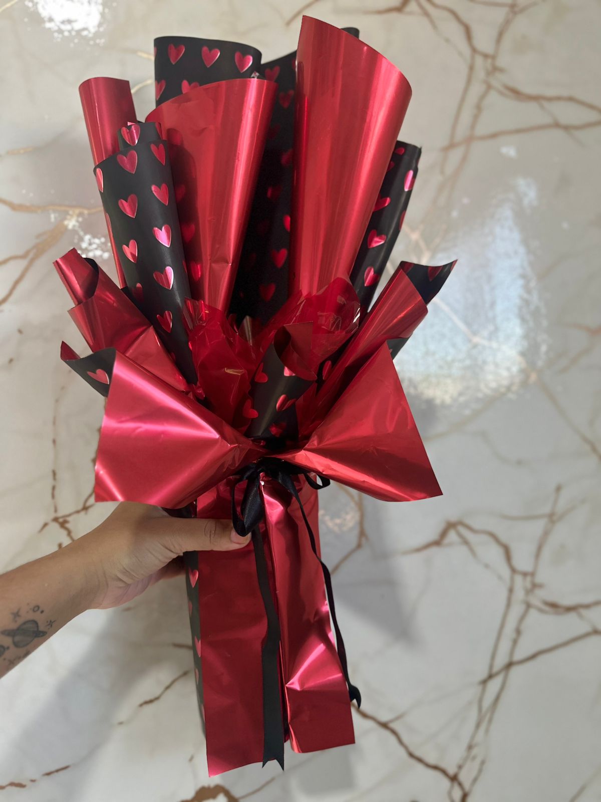 EMBALAGENS FLORAL VERMELHO/PRETO COM CORACAO