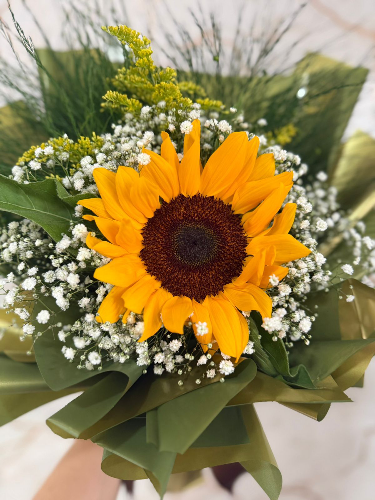 BUQUÊ P COM GIRASSOL SOLITÁRIO GREEN GOOLD